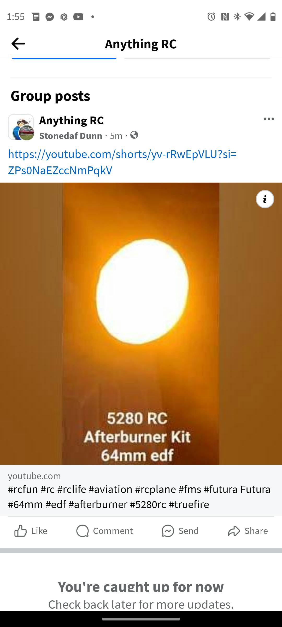 Afterburner mount works with the stock FMS 64mm outrunner (PN 2840-KV3150) motor.