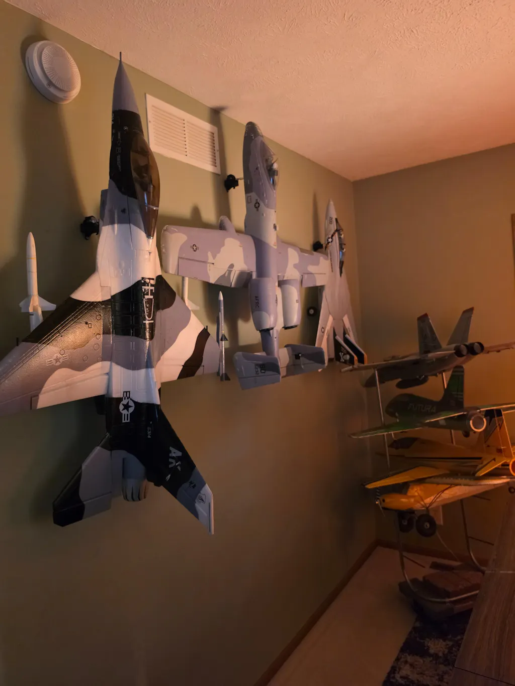 2) Hold the plane up to the wall and note where the holes for the plane hanger are located.
